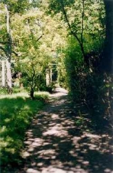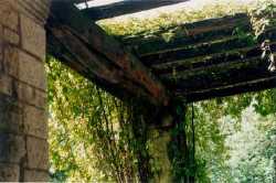 Historischer Wegebau, Laubengänge mit Holzkonstruktion, Kalksandstein
